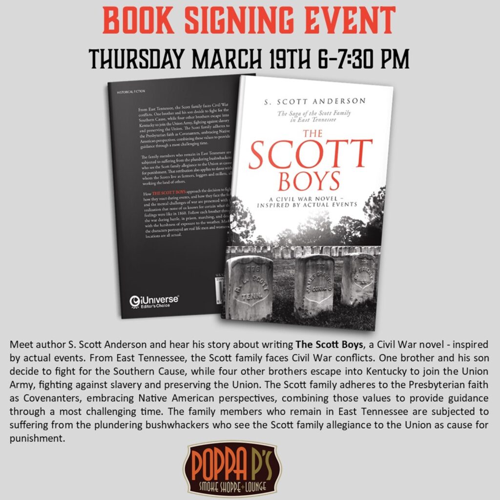 Meet author S. Scott Anderson and hear his story about writing The Scott Boys, a Civil War novel - inspired by actual events. From East Tennessee, the Scott family faces Civil War conflicts. One brother and his son decide to fight for the Southern Cause, while four other brothers escape...